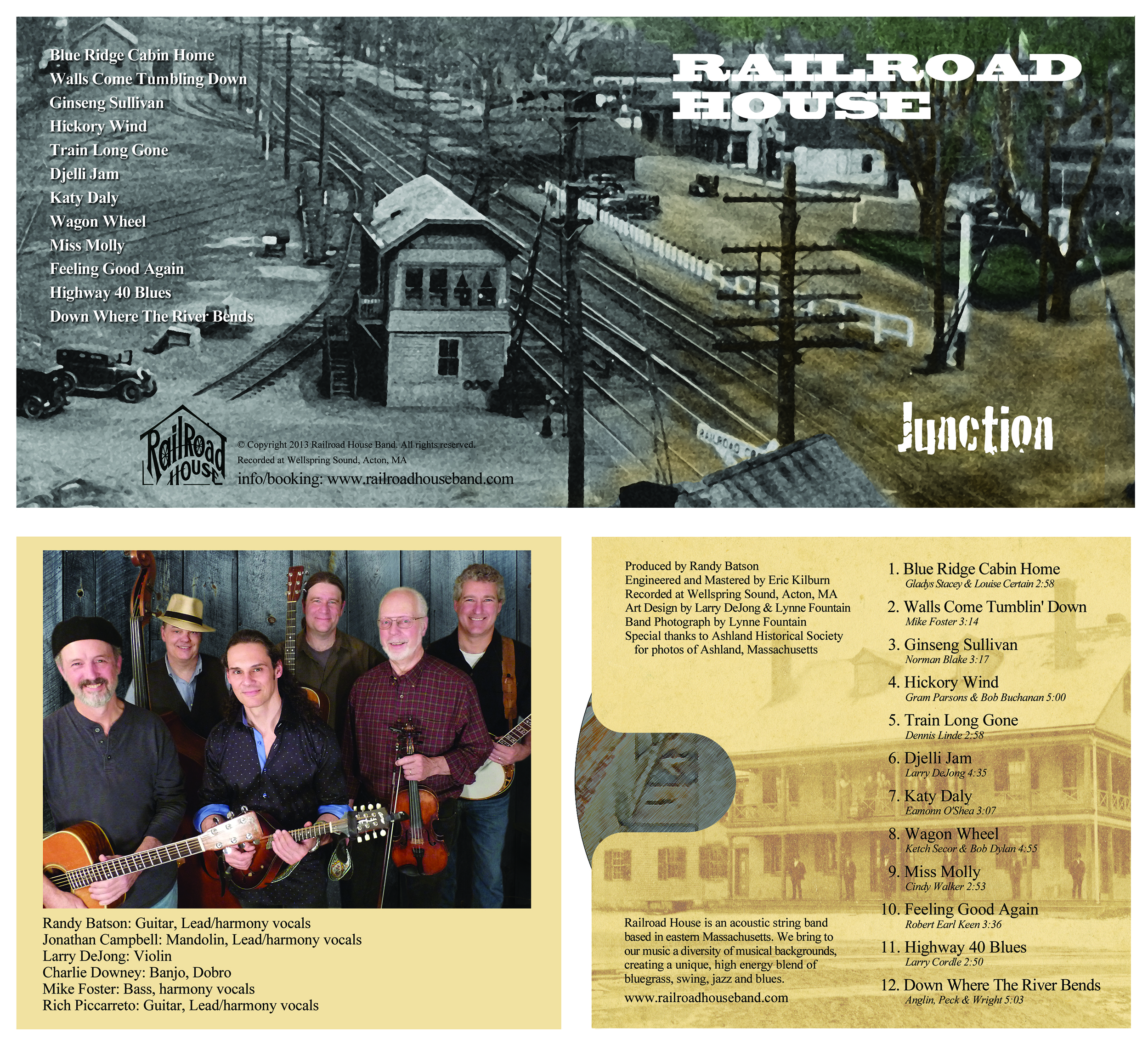 Railroad House’s brand new CD. I had the absolute pleasure of working together with Larry DeJong on this project, and couldn’t be happier with the result. The band was formed many years ago around a monthly open mike session at Stone’s Public House in Ashland, MA. Larry’s concept of using historical photographs of Stone’s worked wonderfully to convey the “history” of the band as well as their musical offerings which range from Bluegrass and Americana to Jazz and Swing.